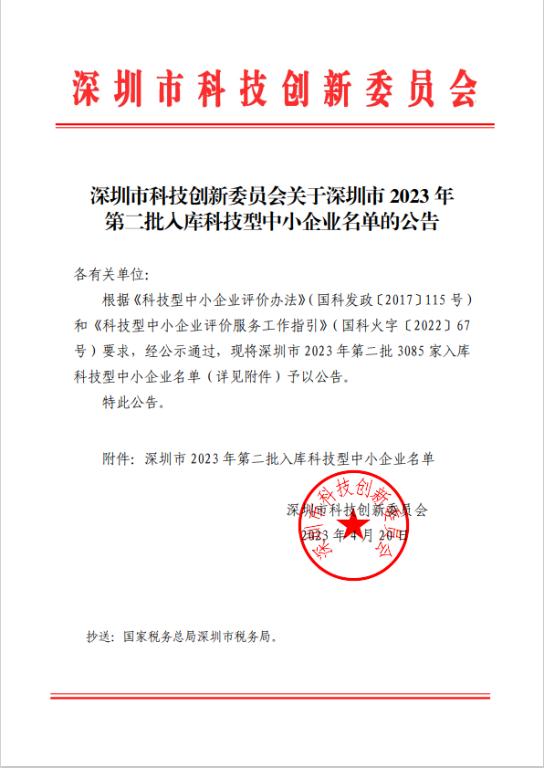 深圳市2023年第2批入库科技型中小企业名单公告
